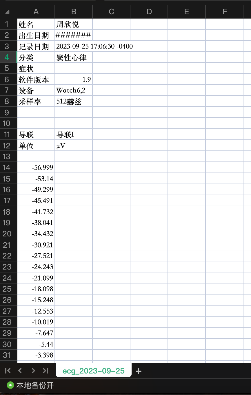 Source Data: Sinus Rhythm Recording on Apple Watch