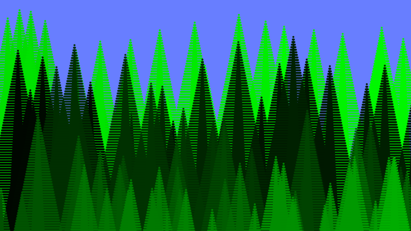 - Secondly, to add dynamics to the color of the trees, I set the color of the trees semi-automatic by looping the green color from dark to light by manipulating the R, G, and B values. In this way, I also provide users with a stable and conventional color pattern of the drawing to maintain harmony in the color palette.