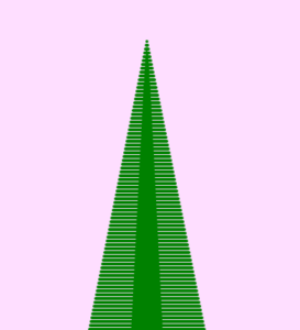 - I use a loop of ellipses to mimic the trunk of a pine tree, by incrementing a variable “i” each time by 0.5 to maintain continuity and at the same time bearing a pattern that tapers from the bottom