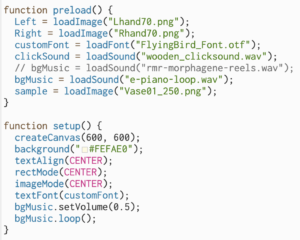 - To prevent chaos in background music, when introducing multiple drawing functions (as I separate the main draw( ) function into 5 parts), the bgMusic.play( ) should be put in the setup( ) function instead of the main draw( ) function.