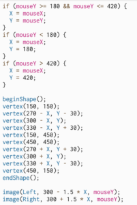 - To solve the problem of limiting the painting area to just the “vase” area, I managed to create a “mask” above the drawing area, which outlines the shape of the vase and acts as the background of the drawing procedure.