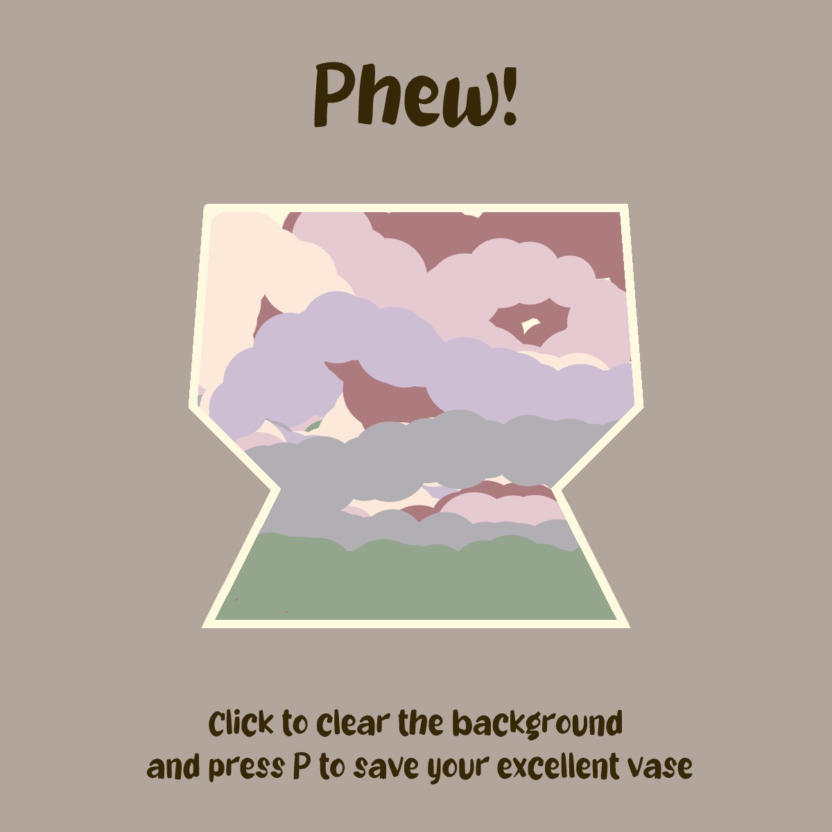 - To solve the problem of limiting the painting area to just the “vase” area, I managed to create a “mask” above the drawing area, which outlines the shape of the vase and acts as the background of the drawing procedure.
