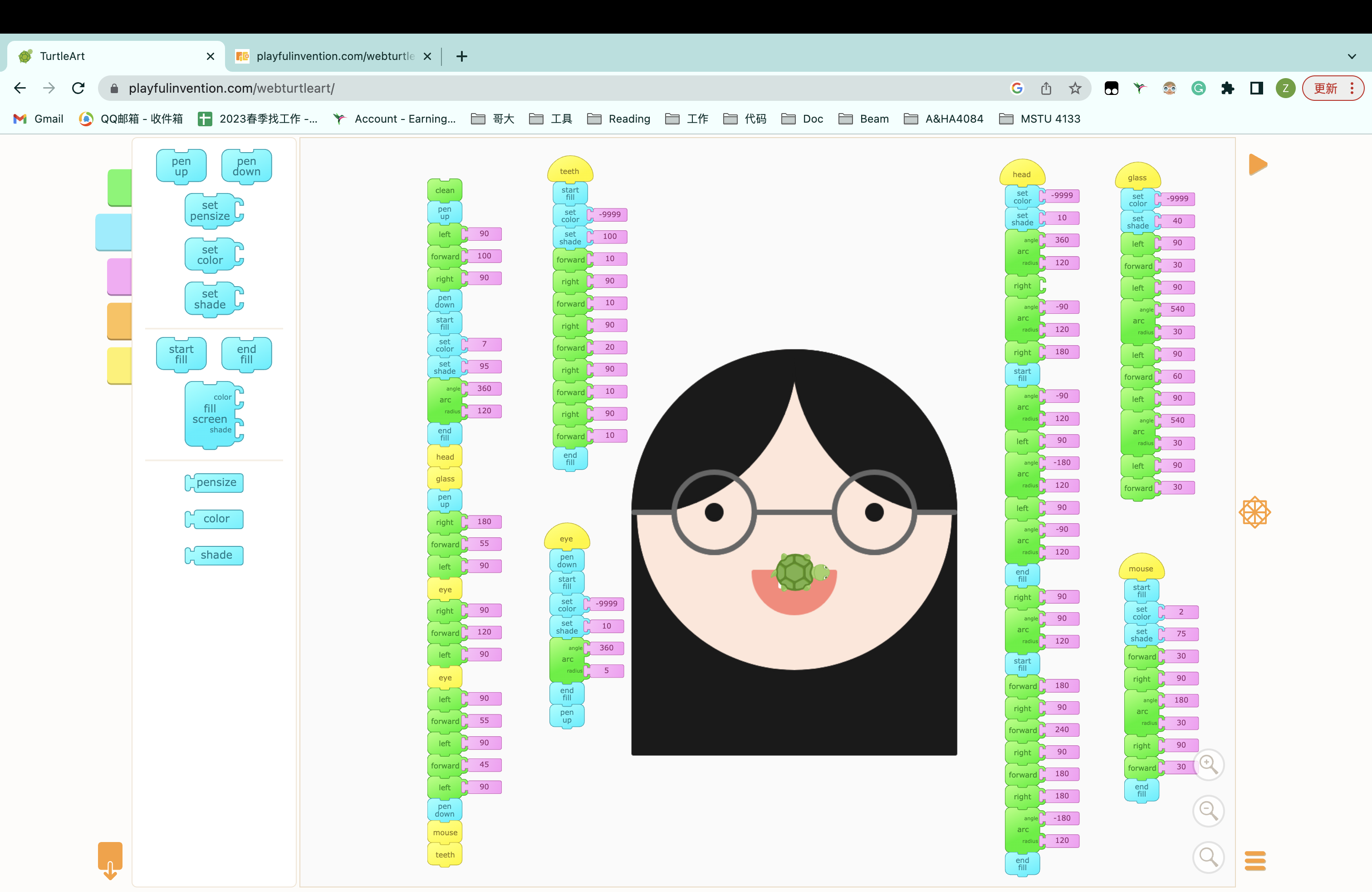 This is the Turtle Art project made to represent my identity. I choose to use a simple, abstract way to create my cartoon avatar.