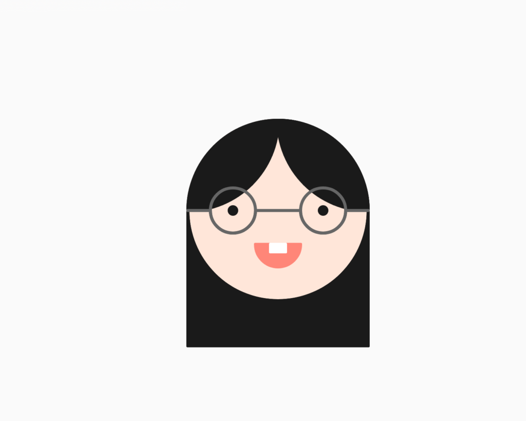 Based on the sketch I have, I start coding. For this part, in order to simplify and organize the process at the same time. I generally divide the whole face into five parts: head, glass, mouth, teeth and eye (as marked as yellow blocks). Then I chain all of the five parts together to create the complete face.